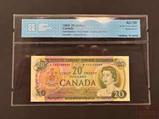 | #13 | Billet de $20 1969 avec astérisque (numéro de remplacement) certifié CCCS AU-58 (comme neuf)