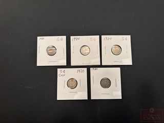 | #178 | 5 Pièces de 5 Cents 1920 en Argent