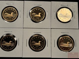 | #190 | Lot de 6 Pièces de 1 Dollar Épreuve 1996-1998-1999-2000-2001-2002