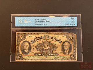 | #173 | Billet de $5 1929 The Bank of Nova Scotia certifié CCCS G-4 (rare)