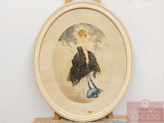 | #15 | Lithographie - Louis Icart - titrée le Bonnet Bleu - 16 pouces de hauteur