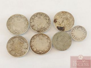 Lot de pièces de monnaies canadiennes et américaines en argent - 5x25 sous canadiens - 1x10 sous canadiens - 1x5 sous américain