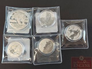 Lot de pièces de monnaies canadiennes en argent - 4x20$ - 1x50$ - le tout en argent fin 9999 - sans taxes