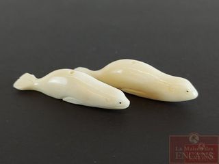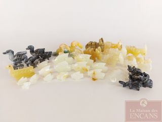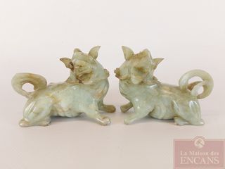 Deux figurines sculptés sur pierre - Foo dog - chien garde de la chine impériale - 3 pouces de hauteur