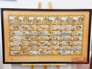 | #201 | Peinture sur panneau vietnamienne - laquée avec incrustation de coquilles d'œufs - mesurant 24x16 pouces