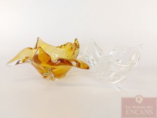 Deux plats en pâte de verre - 5 pouces de haut - signés Chalet France