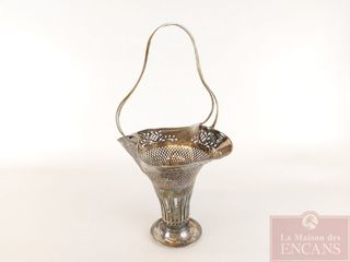 Rare corbeille à fleurs en métal argenté possédant à l'intérieur son verre d'origine - mesurant 17 pouces