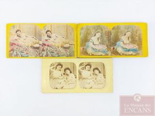 Trois stéréos view coquins - mesurant 3.5x7 pouces