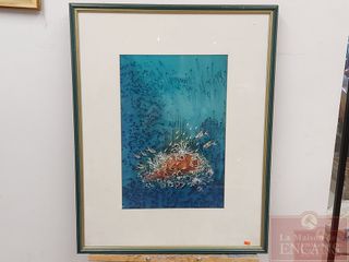 Aquarelle signée - scene sous-marine - 18x12 pouces