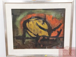 | #9 | Frasca NATO - Huile sur toile de jute ancienne - signée - représentant un taureau stylisé - titré Il Toro - 16x20