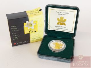 Pièce de 50 sous en argent sterling - Le lis de Pâques - 2004 - canadiens - dans son coffret avec son certificat