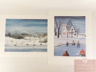 | #202 | Deux lithographies de Jean-Paul LANGLOIS - mesurant 14x17.5 pouces et 16.5x13 pouces - avec documents