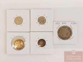 | #18 | Lot de pièces de monnaies canadiennes et américaines en argent - 5x25 sous canadiens - 1x10 sous canadiens - 1x5 sous américain