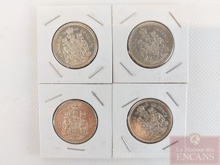 4 pièces de 50 sous en argent canadiens - 1961 - 1963 - 1964 - 1966