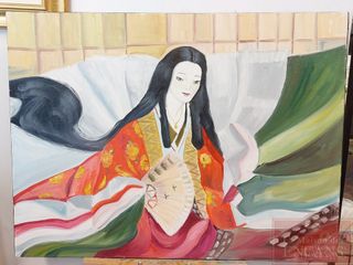 Peinture sur panneau vietnamienne - laquée avec incrustation de coquilles d'œufs - mesurant 24x16 pouces