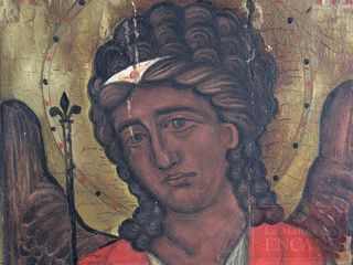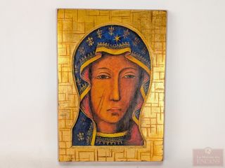 | #219 | Icône religieuse sur bois, peinte à la main avec la méthode tempura et mesurant 13 pouces de hauteur Icône religieuse sur bois, peinte à la main avec la méthode tempura et mesurant 13 pouces de hauteur | ||