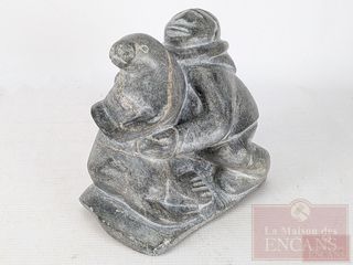| #210 | Sculpture inuite sur pierre à savon, mesurant 12 pouces de largeur Sculpture inuite sur pierre à savon, mesurant 12 pouces de largeur | ||