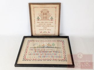 | #61 | Tapisseries orientales brodées à la main; une mesurant 34x5 pouces et l'autre mesurant 77x58 pouces Tapisseries orientales brodées à la main; une mesurant 34x5 pouces et l'autre mesurant 77x58 pouces | ||