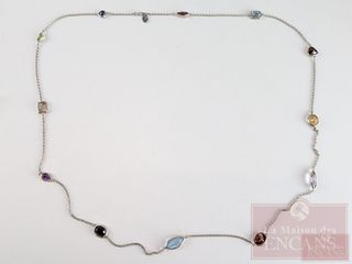 | #164 | Collier en argent serti de multiples pierres, mesurant 36 pouces de longueur et pesant 22 grammes Collier en argent serti de multiples pierres, mesurant 36 pouces de longueur et pesant 22 grammes | ||