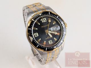 | #180 | Montre Pulsar avec date et jour, cadran unidirectionnel et mouvement au quartz, mesurant 43.6 millimètres de diamètre avec sa couronne, dans sa boite d'origine avec document (fonctionnelle mas besoin d'une nouvelle batterie) Montre Pulsar avec date et jour, cadran unidirectionnel et mouvement au quartz, mesurant 43.6 millimètres de diamètre avec sa couronne, dans sa boite d'origine avec document (fonctionnelle mas besoin d'une nouvelle batterie) | ||