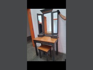 | #243 | Jolie vanité et son banc en pin, fabriqués par La Vieille Fabrique de Ste-Thérèse, achetés dans les années 60-70. Seront récupérés directement à l'entrepôt de Lachine sur RENDEZ-VOUS SEULEMENT ,samedi le 17 janvier 2026 entre midi et 16h. | ||