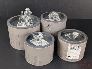 | #216 | Lot de quatre figurines en cristal Swarovski, faites en Autriche, comprenant caniche, oiseau, coq et hérisson dans leurs boites d'origines, la plus grande figurine mesurant 2 pouces de hauteur Lot de quatre figurines en cristal Swarovski, faites en Autriche, comprenant caniche, oiseau, coq et hérisson dans leurs boites d'origines, la plus grande figurine mesurant 2 pouces de hauteur | ||