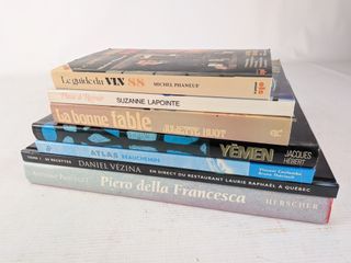 | #241 | Lot de livres autographiés par leurs auteurs, comprenant Daniel Vézina, Yémen, signé par le photographe Marc Hébert, Atlas Beauchemin, signé par Vincent Coulombe, La bonne table, signé par Juliette Huot, Plaisir de recevoir tome II, signé par Suzanne Lapointe, Le guide du vin 88, signé par Michel Phaneuf, ainsi que livre Piero della Francesca. Tous premières édition Lot de livres autographiés par leurs auteurs, comprenant Daniel Vézina, Yémen, signé par le photographe Marc Hébert, Atlas Beauchemin, signé par Vincent Coulombe, La bonne table, signé par Juliette Huot, Plaisir de recevoir tome II, signé par Suzanne Lapointe, Le guide du vin 88, signé par Michel Phaneuf, ainsi que livre Piero della Francesca. Tous premières édition | ||