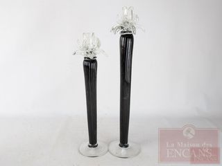 | #188 | Paire de chandeliers en verre soufflé, mesurant 18 pouces de hauteur Paire de chandeliers en verre soufflé, mesurant 18 pouces de hauteur | ||