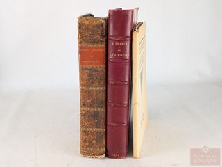 | #207 | Lot de trois livres anciens comprenant Les œuvres complètes de Montesquieu, imprimé en 1835 avec gravure à l'eau-forte représentant l'auteur, Orage de François Mauriac, ainsi que Le lys rouge d'Anatole France, édition de 1903 | ||