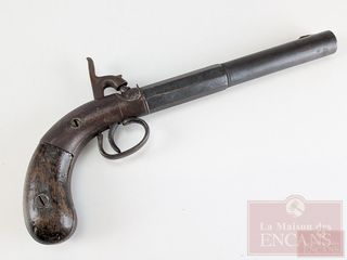 | #189 | Ancien pistolet anglais à poudre Allen and Whellock, datant des années 1830-1840 et mesurant 10 pouces de longueur, mécanisme fonctionnel Ancien pistolet anglais à poudre Allen and Whellock, datant des années 1830-1840 et mesurant 10 pouces de longueur, mécanisme fonctionnel | ||