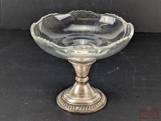 | #223 | Centre de table en verre avec pied en argent sterling Frank Whiting and Co., mesurant 5 pouces de hauteur au total Centre de table en verre avec pied en argent sterling Frank Whiting and Co., mesurant 5 pouces de hauteur au total | ||