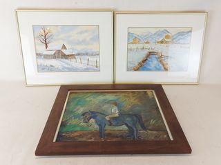 Deux émaux sur cuivre signés dont un signé Jeanne Giasson Therrier - le plus grand mesurant 9.75 pouces de diamètre