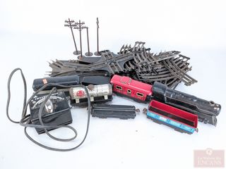 | #189 | Train électrique Marx avec locomotive, wagons, rails et accessoires Train électrique Marx avec locomotive, wagons, rails et accessoires | ||