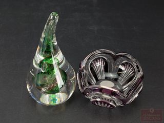 | #152 | Deux presse-papiers, un en verre soufflé et un cristal, le plus grand mesurant 5.25 pouces de hauteur Deux presse-papiers, un en verre soufflé et un cristal, le plus grand mesurant 5.25 pouces de hauteur | ||
