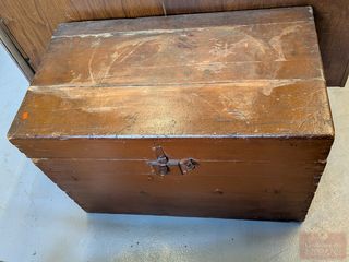 | #22 | Ancien coffre de bateau en bois, assemblage à queue d'aronde avec étiquette Cunard Line, mesurant 31.5 pouces de largeur Ancien coffre de bateau en bois, assemblage à queue d'aronde avec étiquette Cunard Line, mesurant 31.5 pouces de largeur | ||