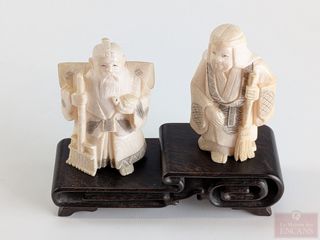 | #226 | Paire d'okimonos japonais finement sculptés sur ivoire avec leurs bases en bois, datant des années 1960 et mesurant 2 pouces sans leur bases Paire d'okimonos japonais finement sculptés sur ivoire avec leurs bases en bois, datant des années 1960 et mesurant 2 pouces sans leur bases | ||