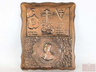 | #14 | Boite à courrier Charles de Gaule en bois et cuivre, mesurant 12.5 pouces de hauteur Boite à courrier Charles de Gaule en bois et cuivre, mesurant 12.5 pouces de hauteur | ||