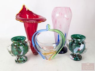 | #144 | Lot de vases en verre soufflé, le plus grand mesurant 10 pouces de hauteur Lot de vases en verre soufflé, le plus grand mesurant 10 pouces de hauteur | ||