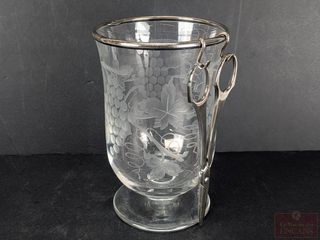 | #48 | Vase service à raisin en verre ciselé avec sa paire de ciseaux, datant de la fin du 19eme/début du 20eme siècle et mesurant 6.75 pouces de hauteur Vase service à raisin en verre ciselé avec sa paire de ciseaux, datant de la fin du 19eme/début du 20eme siècle et mesurant 6.75 pouces de hauteur | ||