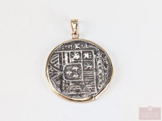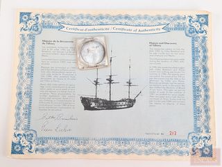 | #199 | Ancienne pièce espagnole en argent, provenant de l'épave du bateau Tilbury, datant de 1739 et mesurant 1.5 pouces, avec certificat Ancienne pièce espagnole en argent, provenant de l'épave du bateau Tilbury, datant de 1739 et mesurant 1.5 pouces, avec certificat | ||
