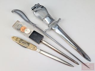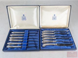 | #46 | Ensemble de couteaux à steak Birks Sheffield, mesurant 8.5 pouces de longueur au total, dans leur boite mesurant 9.5 pouces Ensemble de couteaux à steak Birks Sheffield, mesurant 8.5 pouces de longueur au total, dans leur boite mesurant 9.5 pouces | ||