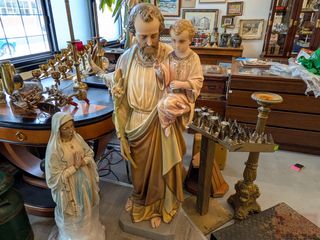 | #11 | Plâtre Bernardi y Nieri, Montréal, peint à la main, représentant Saint-Joseph et l'enfant Jésus, datant du 20eme siècle et mesurant 54.5 pouces de hauteur Plâtre Bernardi y Nieri, Montréal, peint à la main, représentant Saint-Joseph et l'enfant Jésus, datant du 20eme siècle et mesurant 54.5 pouces de hauteur | ||