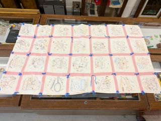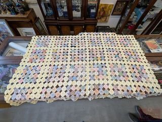 | #163 | Courte-pointe artisanale avec broderie faite à la main, mesurant 61x72 pouces Courte-pointe artisanale avec broderie faite à la main, mesurant 61x72 pouces | ||