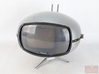 | #12 | Télévision Panasonic ''space age'', datant des années 1970 et mesurant 12 pouces de largeur Télévision Panasonic ''space age'', datant des années 1970 et mesurant 12 pouces de largeur | ||