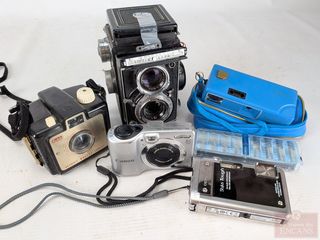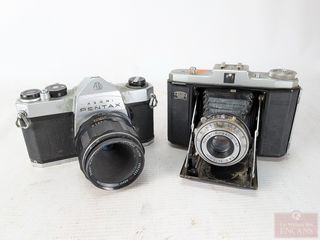 | #150 | Deux appareils-photos argentiques, dont un Pentax avec objectif 50mm 1.4 macro ainsi qu'un appareil allemand Zeiss Ikon moyen format, tels-quels Deux appareils-photos argentiques, dont un Pentax avec objectif 50mm 1.4 macro ainsi qu'un appareil allemand Zeiss Ikon moyen format, tels-quels | ||