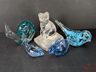 | #142 | Lot de figurines vintages en verre soufflé, dont verre de Murano, cristal d'Arques et autres, le chat mesurant 4.75 pouces de hauteur Lot de figurines vintages en verre soufflé, dont verre de Murano, cristal d'Arques et autres, le chat mesurant 4.75 pouces de hauteur | ||