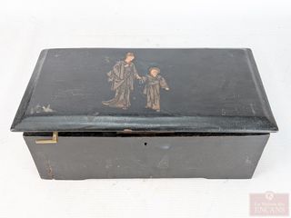 | #37 | Coffret chinois laqué avec boite à musique T.V.F, datant de la fin du 19eme/début du 20eme siècle et mesurant 12.5 pouces, telle-quelle Coffret chinois laqué avec boite à musique T.V.F, datant de la fin du 19eme/début du 20eme siècle et mesurant 12.5 pouces, telle-quelle | ||