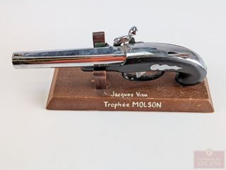 | #216 | Trophée Molson Jacques Viau briquet en forme de pistolet à bourre, mesurant 8 pouces de longueur Trophée Molson Jacques Viau briquet en forme de pistolet à bourre, mesurant 8 pouces de longueur | ||