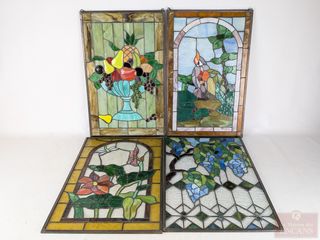 | #44 | Quatre vitraux à vitres plombées, mesurant 21.75x13.5 pouces chacun Quatre vitraux à vitres plombées, mesurant 21.75x13.5 pouces chacun | ||
