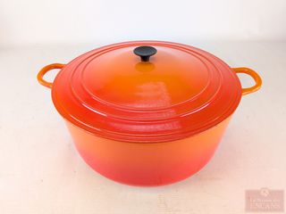 | #188 | Grand cocotte Le Creuset en fonte émaillée, mesurant 13é5 pouces de diamètre Grand cocotte Le Creuset en fonte émaillée, mesurant 13é5 pouces de diamètre | ||